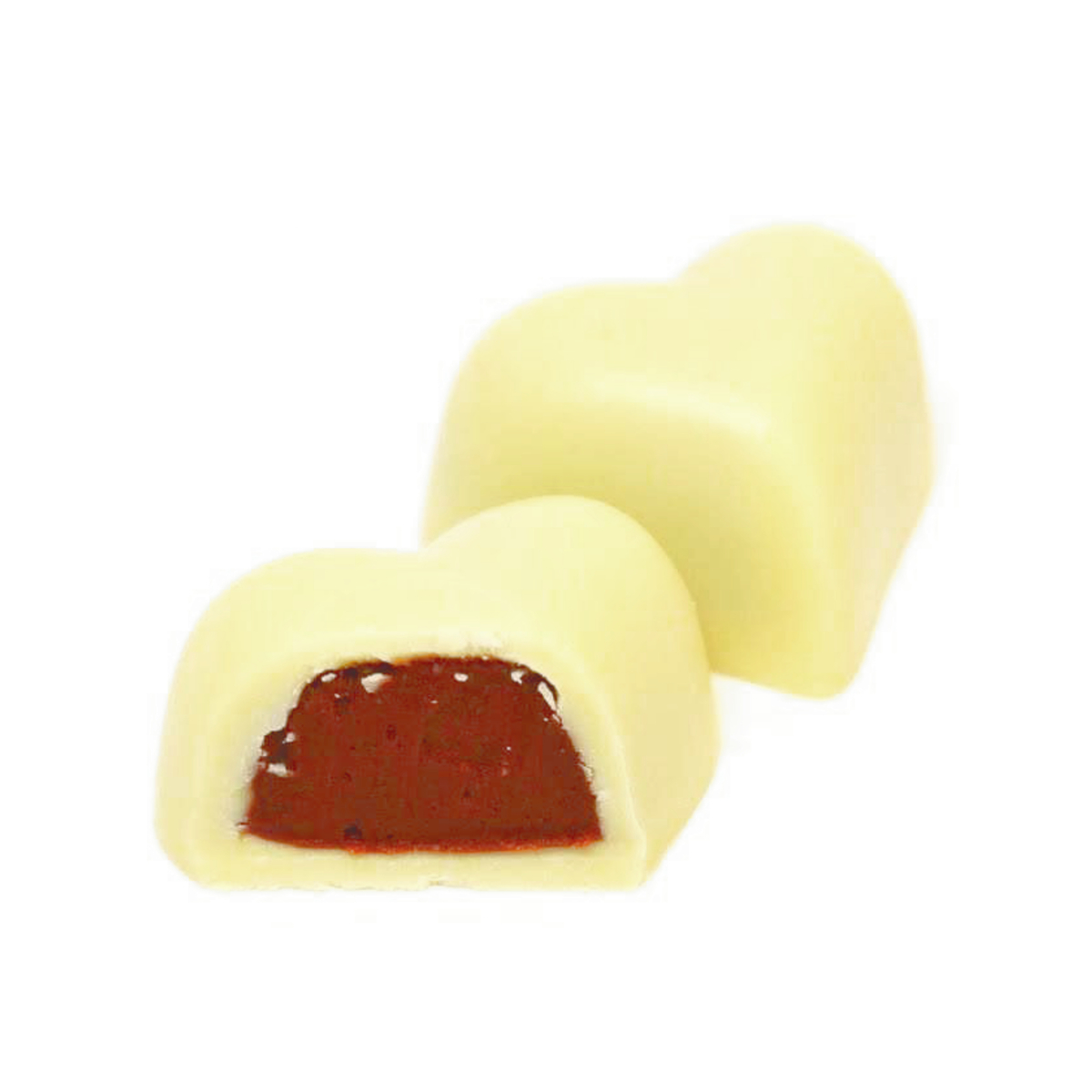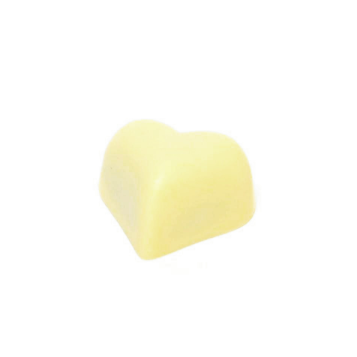 O inimă din ciocolată albă umplută cu ganache aromat cu lichior Amaretto și… un strop de magie, pentru ca ziua să devină mai bună!