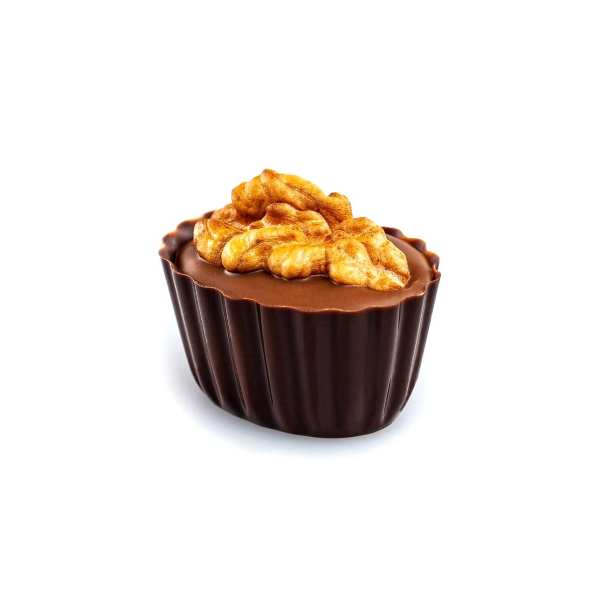 Sub un sfert de nucă, într-o cupă de ciocolată neagră, Margot ascunde gustul unei zile de toamnă cu marțipan 60%, cremă de nuci și migdale.